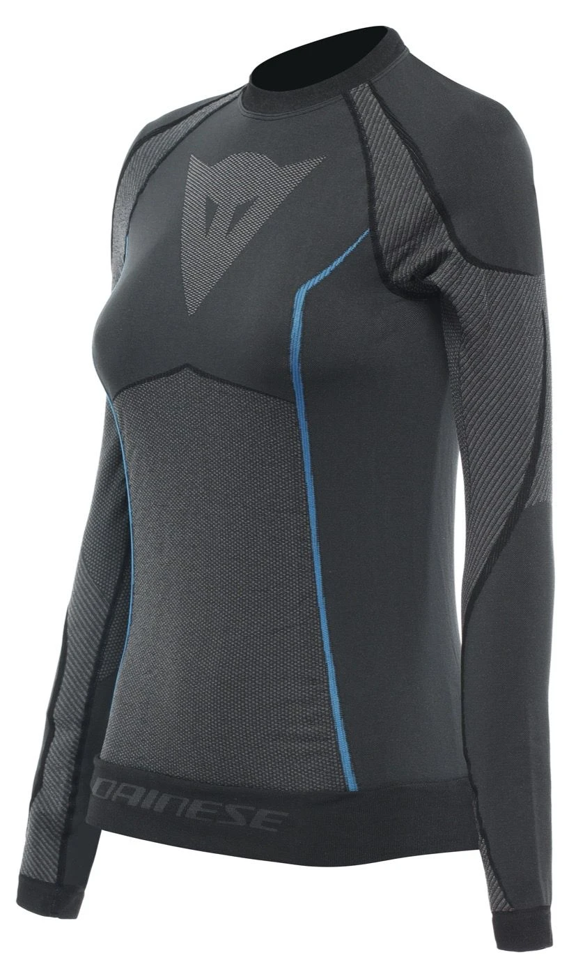 Het Dainese Dry Long Sleeve dames ondershirt veraangenaamd jouw zomerse ritten. Dit stretch slim fit shirt voorkomt dat je op den duur vastplakt aan je motorjas. Sterker nog, hij gaat verder. Het Dryarn materiaal biedt vocht afdrijvende eigenschappen waardoor vocht van het lichaam wordt afgevoerd. Bovendien biedt het verkoelende eigenschappen op de huid wat met hogere temperaturen erg welkom is.