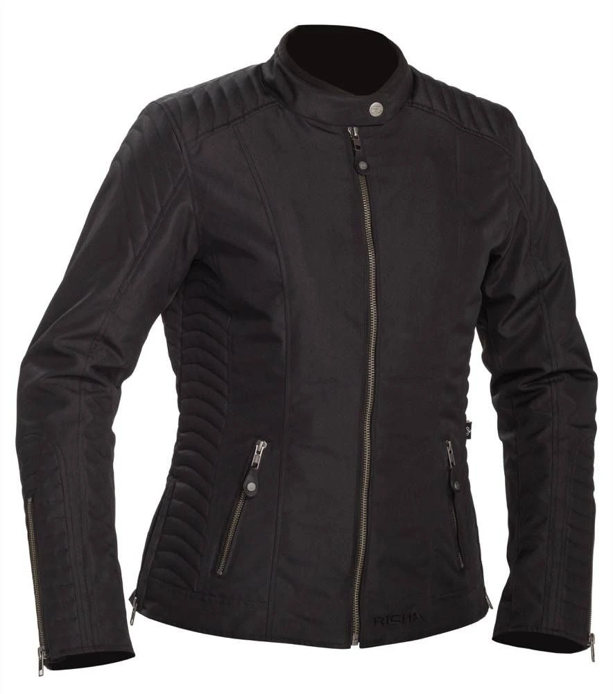De ontwerpers van Richa hebben zich met de Lausanne Textile laten leiden door de leren variant van deze textiel motorjas. Het resultaat is een mooi gesneden en getailleerd dames motorjacket dat beschikt over de voordelen van textiel. Zo is een waterdicht membraan inbegrepen en de thermovoering uitneembaar. Dat een motorjas waarmee je door weer en wind kan rijden, niet suf hoeft te zijn, dat bewijst de Richa Lausanne Textile.
