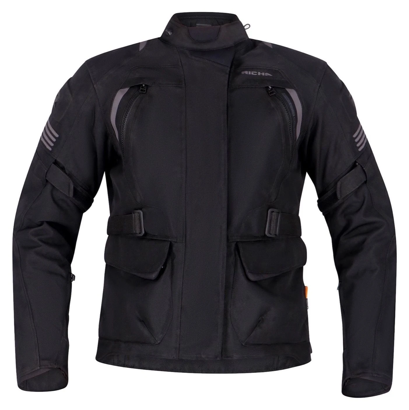 Zoals het een touring jacket betaamt beschikt die over de nodige verstelbanden voor optimale aansluiting. Op de ellebogen en schouders vinden de D3O level 1 protectoren hun weg en zelfs op de rug is standaard een level 1 D3O protector toegevoegd. Je kunt de Phantom 3 dames motorjas door de korte verbindingsrits combineren met elke Richa textiel motorbroek om zo je touring set te vervolledigen.