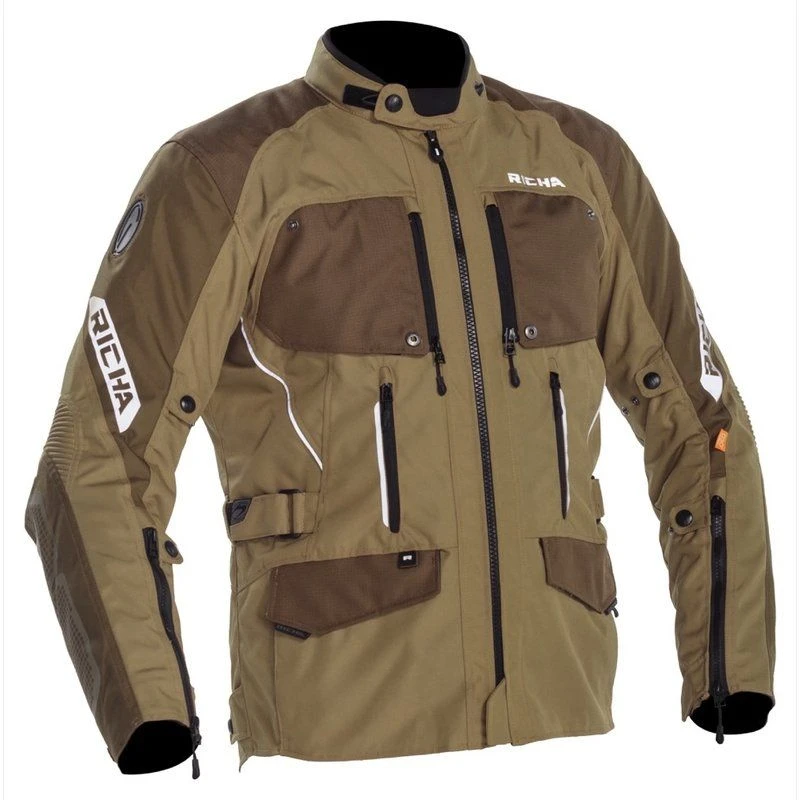 De Richa Utah motorjas spitst zich toe op de adventure-rijder. Een waterdicht membraan met een waterkolom van 8000mm houdt je niet alleen gortdroog tijdens een wolkbreuk maar is tevens uitneembaar wat de Utah breed inzetbaar maakt. Tel hier de in de jas verwerkte ventilatieopeningen bij op en je bent ook in de zomer voorzien van comfort. Stelmogelijkheden zijn er in overvloed. Zo zijn de machetes, armen , heup-& tailleband hier allen van voorzien om je eigen pasvorm te creëren. De D3o impactprotectie is te vinden op de schouders en ellebogen en is voorzien van het CE level 1 keurmerk. Mocht je de protectoren uit willen breiden naar level 2 dan is dat ook mogelijk.